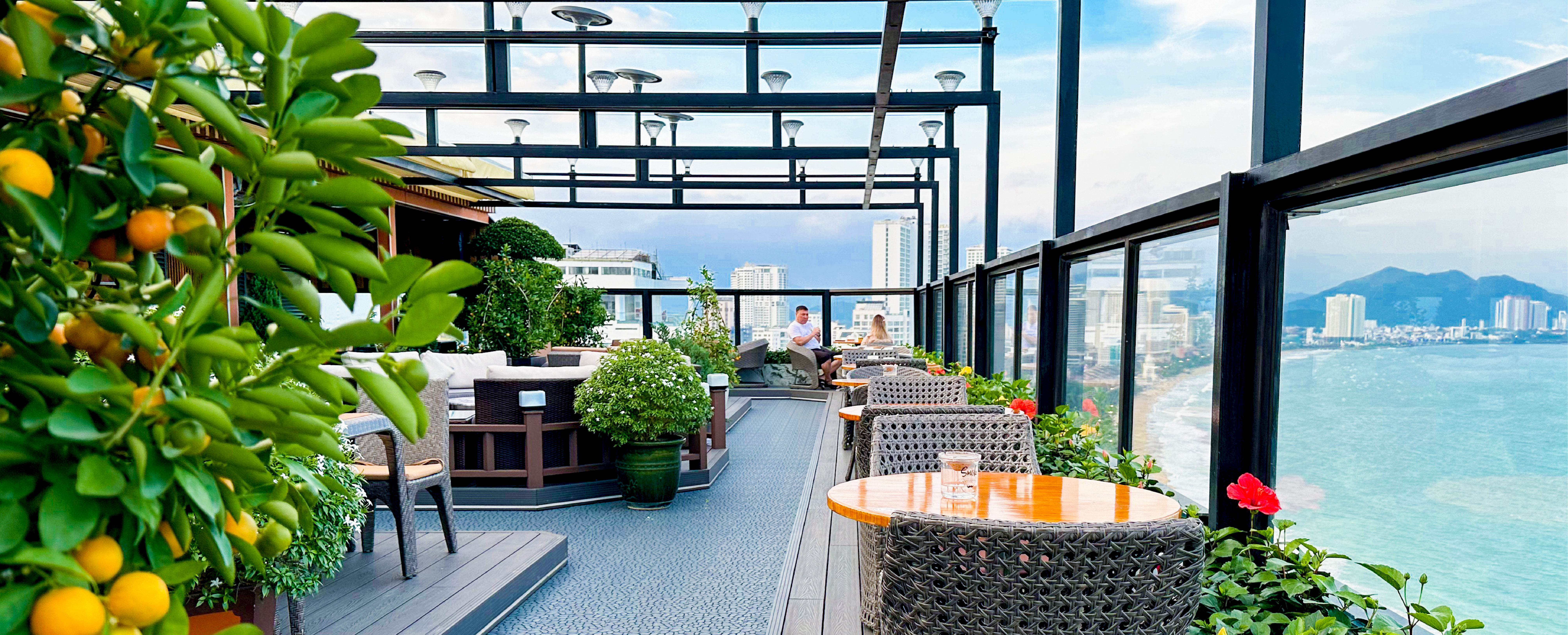 Sky Lounge 提供宽敞的开放空间,沉浸在大海悠扬的旋律中,格外“凉爽”。 夜幕降临,华灯初上的芽庄市灯火璀璨,海浪拍打沙滩的宁静让Sky Lounge愈加迷人。 无论是家庭度假还是长期商务旅行,此地都将是享用下午茶、观赏芽庄市华灯初上的璀璨影像的理想场所。