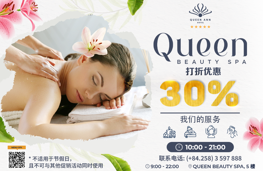- Queen Beauty Spa 的水疗服务和套餐可享受 30% 的折扣。