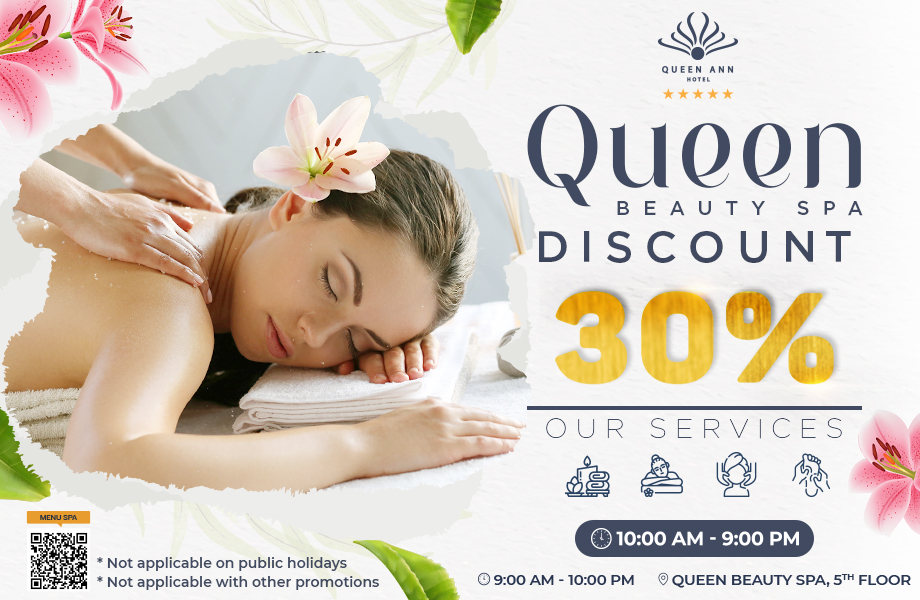- 30% off spa services and packages at Queen Beauty Spa.