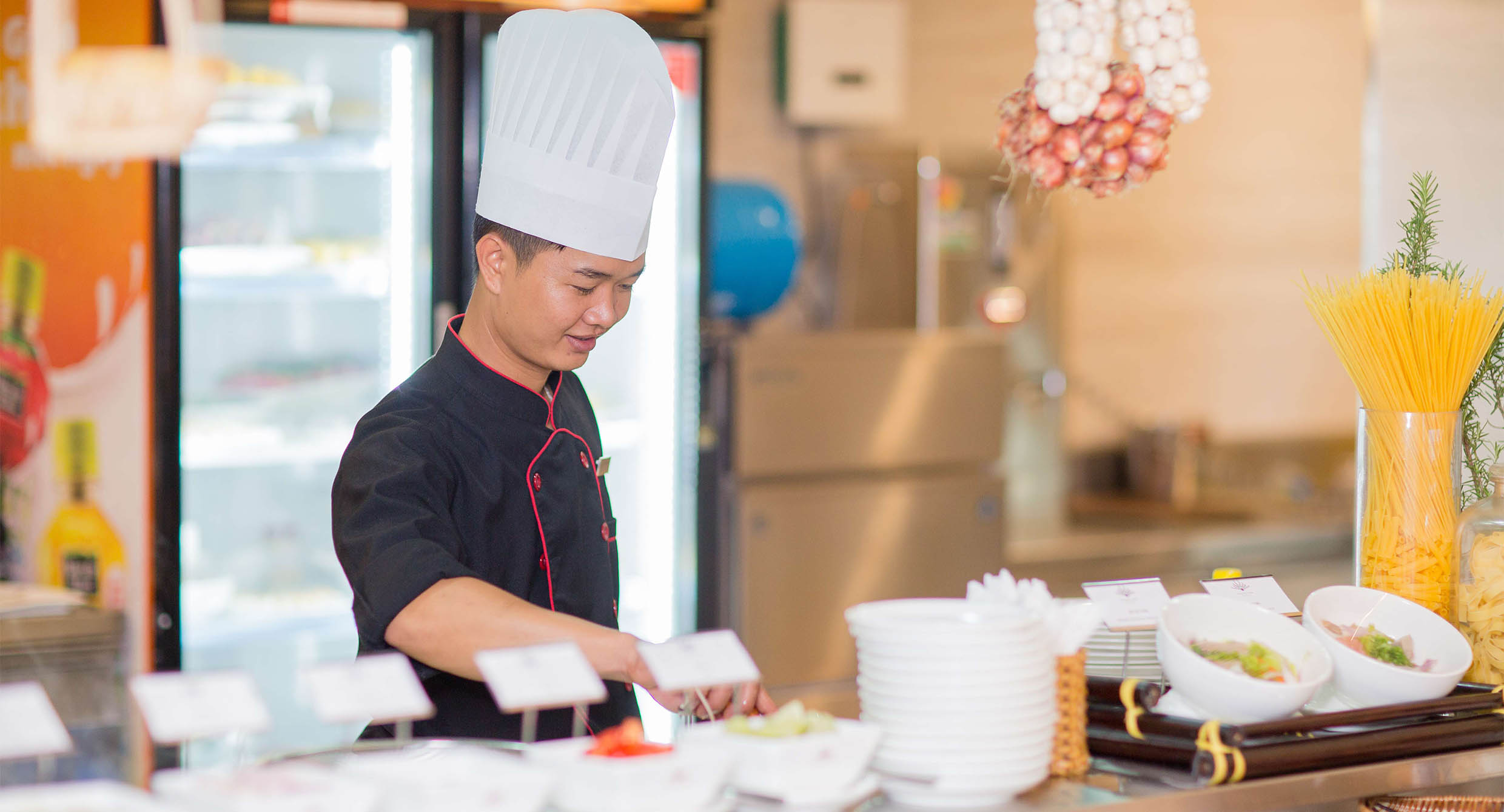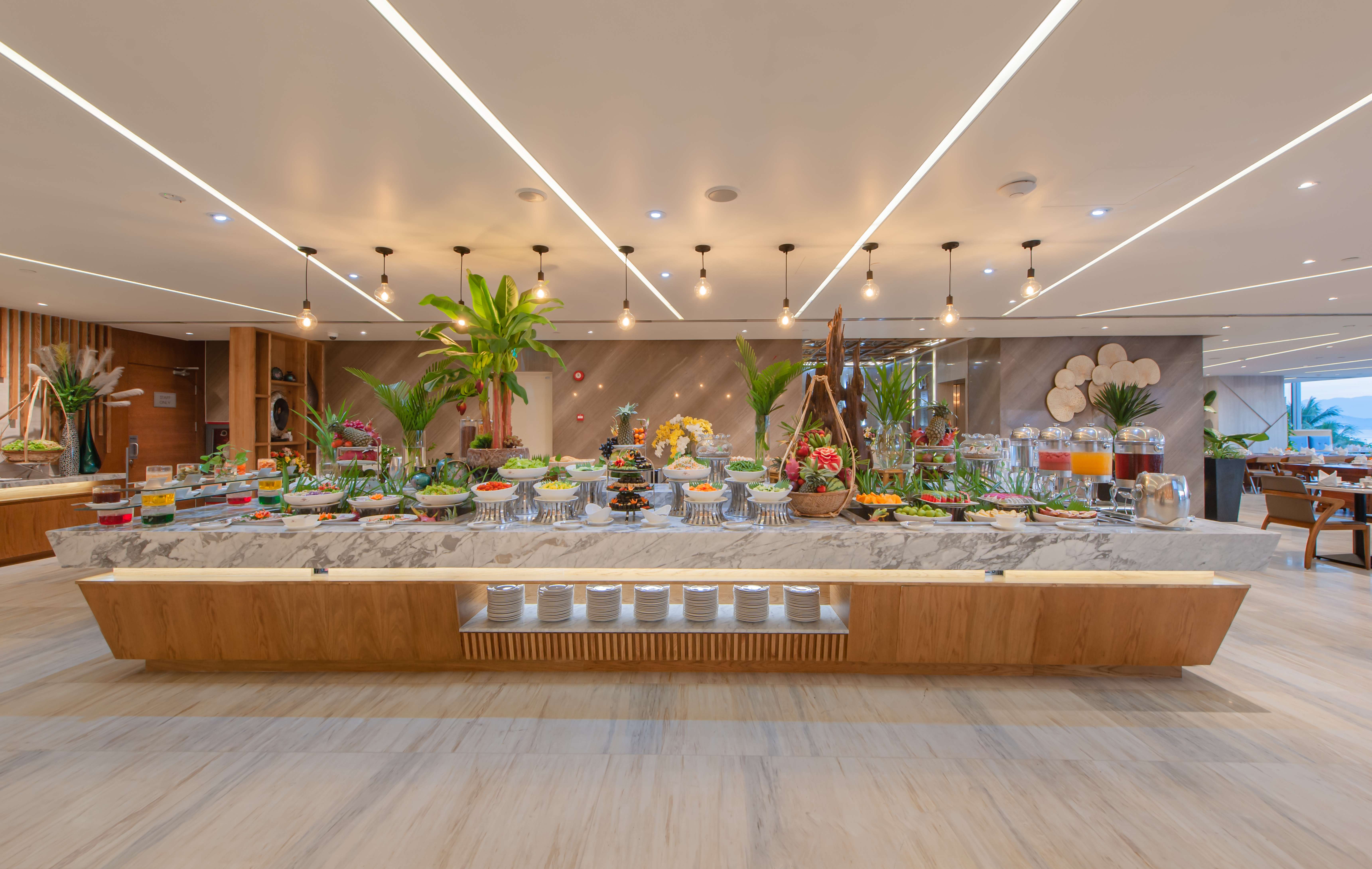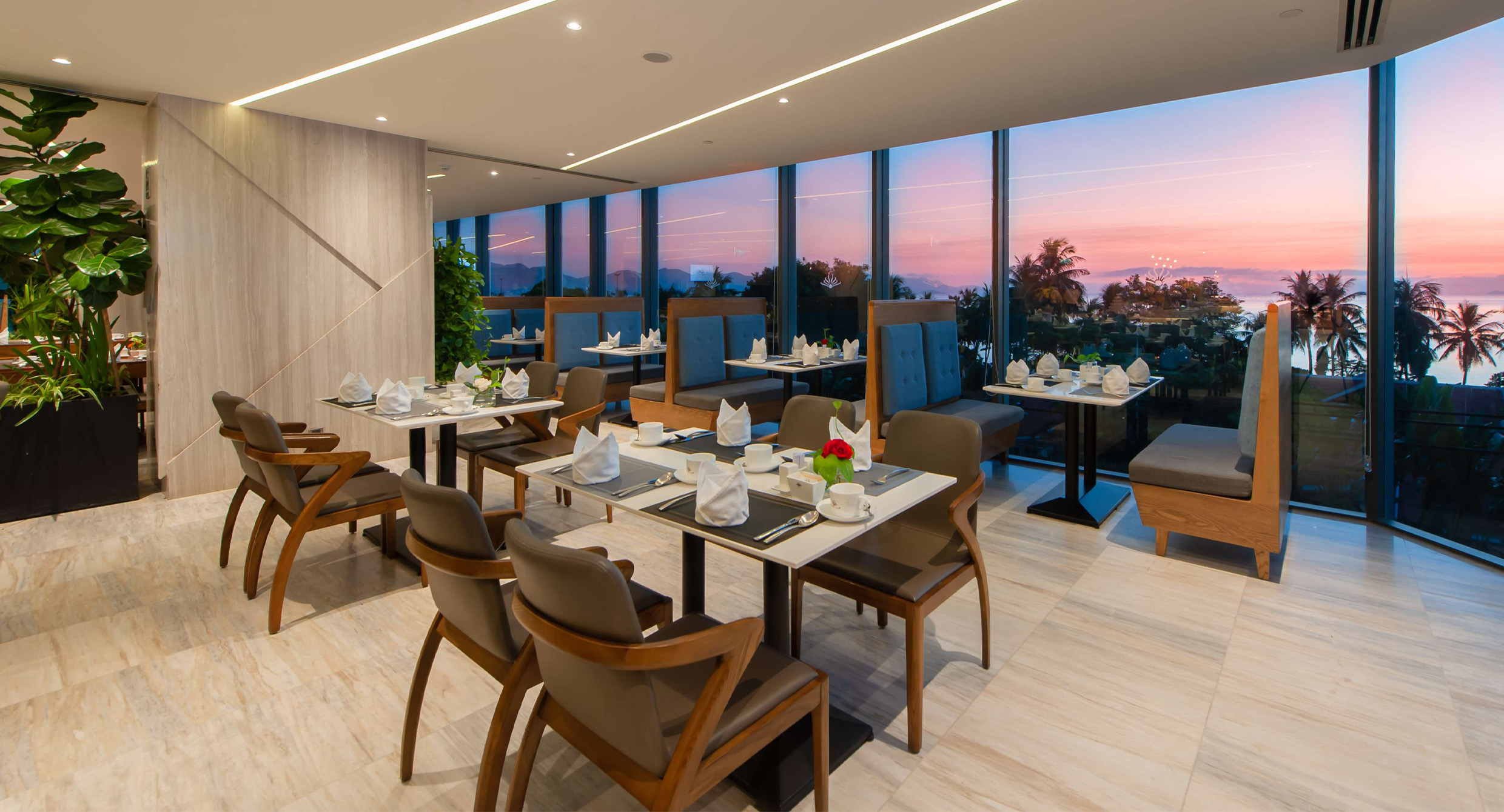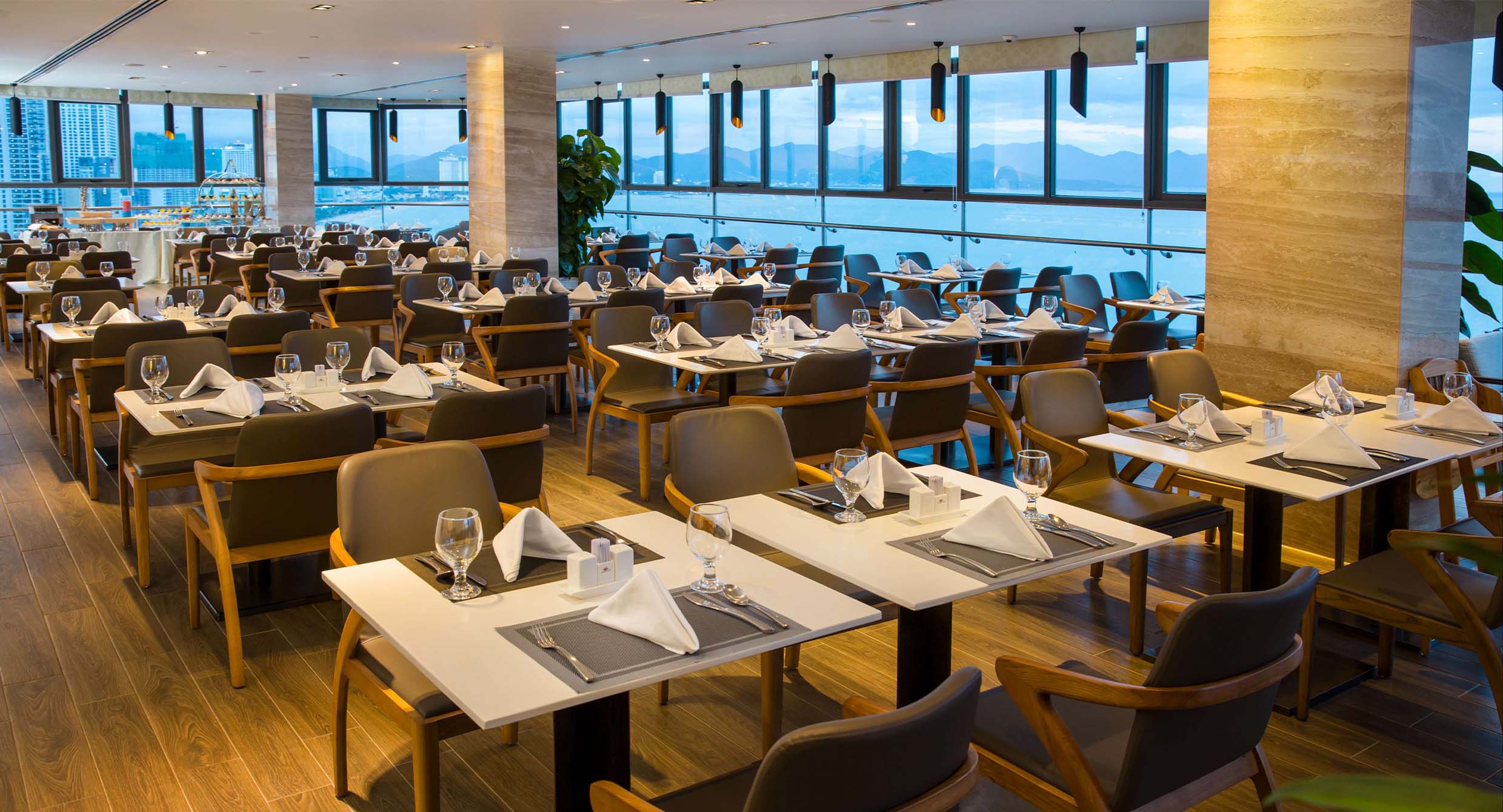 오션 퀸은 Nha Trang에서 전망이 가장 아름다운 레스토랑 중 하나임을 자랑스럽게 생각합니다. 아시아 및 유럽 요리를 완벽하게 조합하는 메뉴로 조식 뷔폐를 다양하게 즐길 수 있습니다. 오션 퀸 레스토랑은 바다를 포괄하는 전망이 있는 고급스럽고 세련된 공간으로 우선으로 설계되었으며 가족, 친구와 함께 맛있는 식사를 즐길 수 있는 이상적인 장소가 될 것입니다.