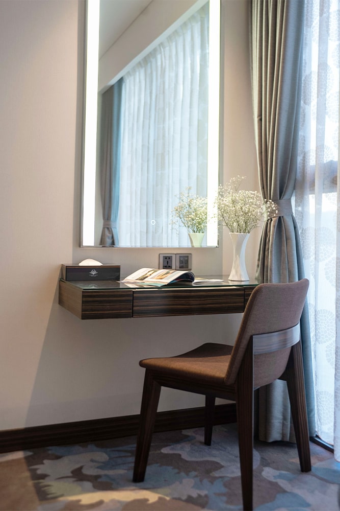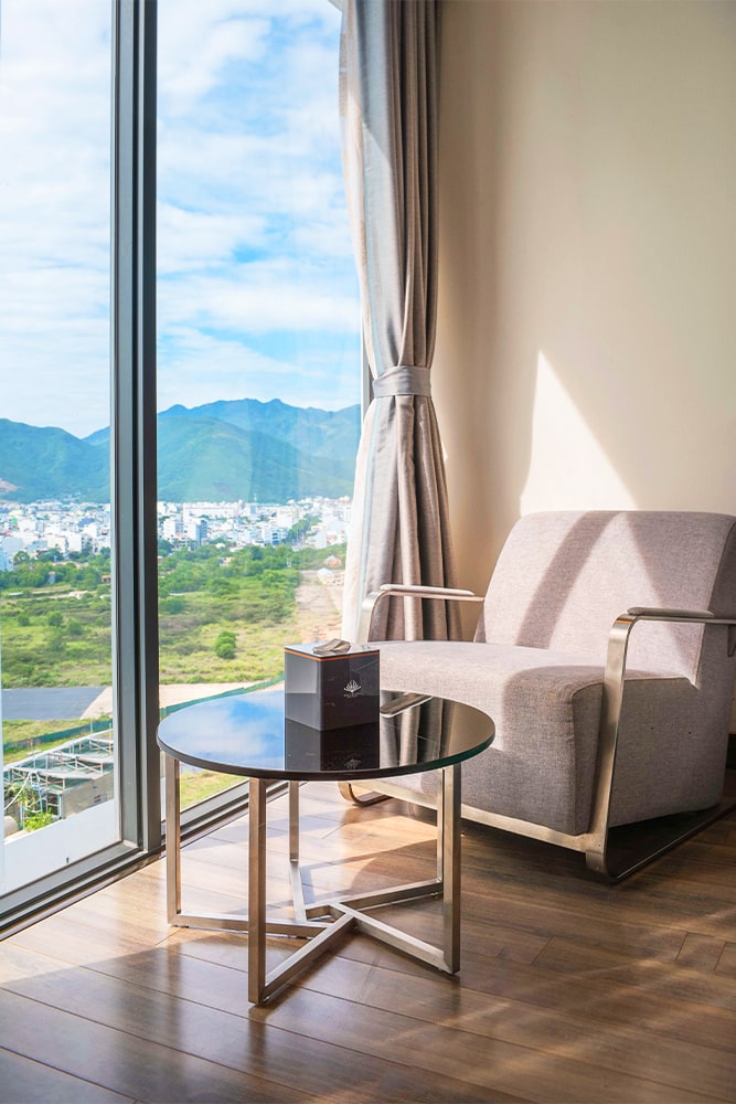 면적이32m2인 디럭스 트윈룸은 1m2 x 2m 크기의 싱글 침대 2개를 마련하고 바다와 Nha Trang 시가 보입니다. 현대적이고 우아하게 인테리어되어 있고 공간이 넓어 호텔에 머무는 당신에게 좋은 휴양의 순간을 선사합니다. 공기를 필터링하고 자연 공기를 공급하는 시스템은 당신의 건강과 환경에 완전히 친화적입니다. Queen Ann Nha Trang의 모든 디럭스 트윈룸은 창문이 있으며 샤워부스와 욕조가 설치되어 있어 경험을 극대화합니다. 현대적인 유럽 스타일로 인테리어되어 있어 당신이 따뜻하고 편안하게 느끼게 합니다.
