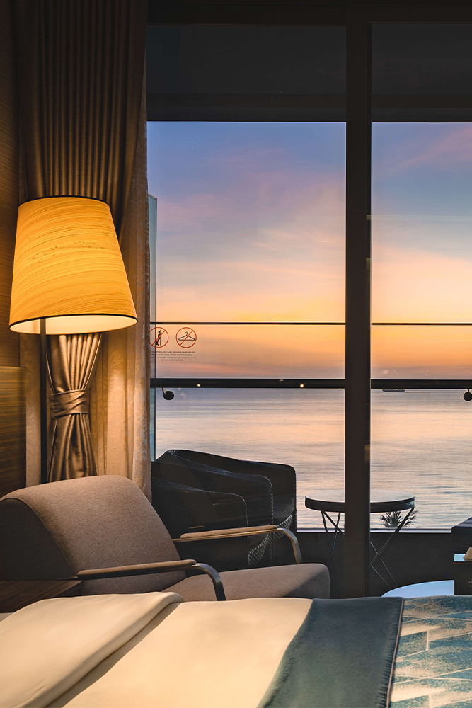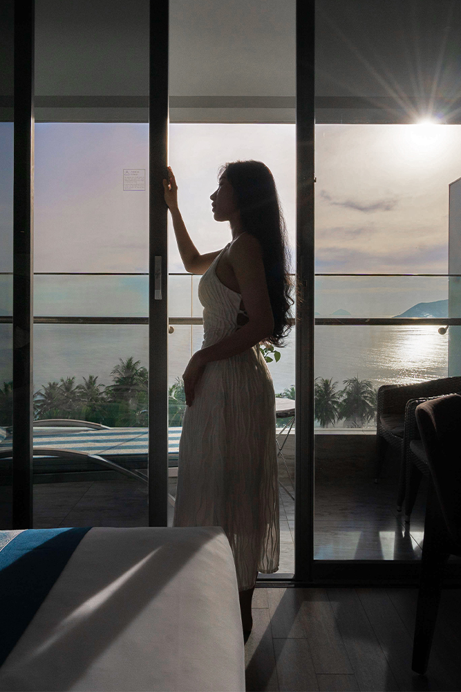 Premier Queen Ocean View Balcony 방은 면적이 35m2로 조화롭게 설계되어 넓고 편안한 느낌을 줍니다. 발코니는 무극 바다를 포괄하는 전망이 있고 일광욕 침대, 차를 즐기는 테이블과 의자를 마련하여 당신이 머무는 동안 휴양 편익 시설을 마음껏 즐기실 수 있습니다. 객실은 고급스럽고 세련되게 인테리어되어 있으며 공기를 필터링하고 자연 공기를 공급하는 시스템이 건강과 환경에 완전히 친화적입니다. Premier Queen Ocean View Balcony방은 1m8 x 2m의 대형 더블 침대가 있어 방의 편리람을 만족하실 것입니다. 또한 욕실에 샤워부스와 욕조의 2가지 욕조, 국제 표준 독일산 급수 시설이 있어 완벽한 경험을 선사할 것입니다. 이 방은 또한 Queen Ann Nha Trang Hotel에서 관광객들이 가장 좋아하고 많이 선택한 방입니다.