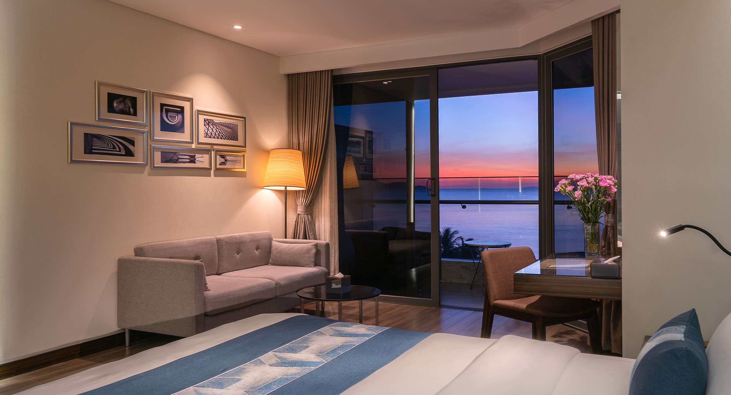 아름다운 Nha Trang Bay 아크의 탁 트인 전망은 Grand Deluxe King SeaView 룸의 가치를 확인시켜줍니다.