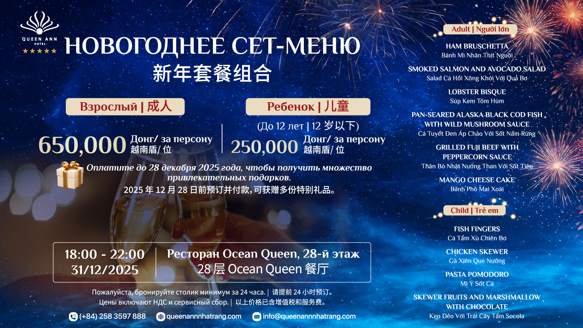 📌 Место проведения: ресторан Ocean Queen, 28 этаж отеля Queen Ann Nha Trang.