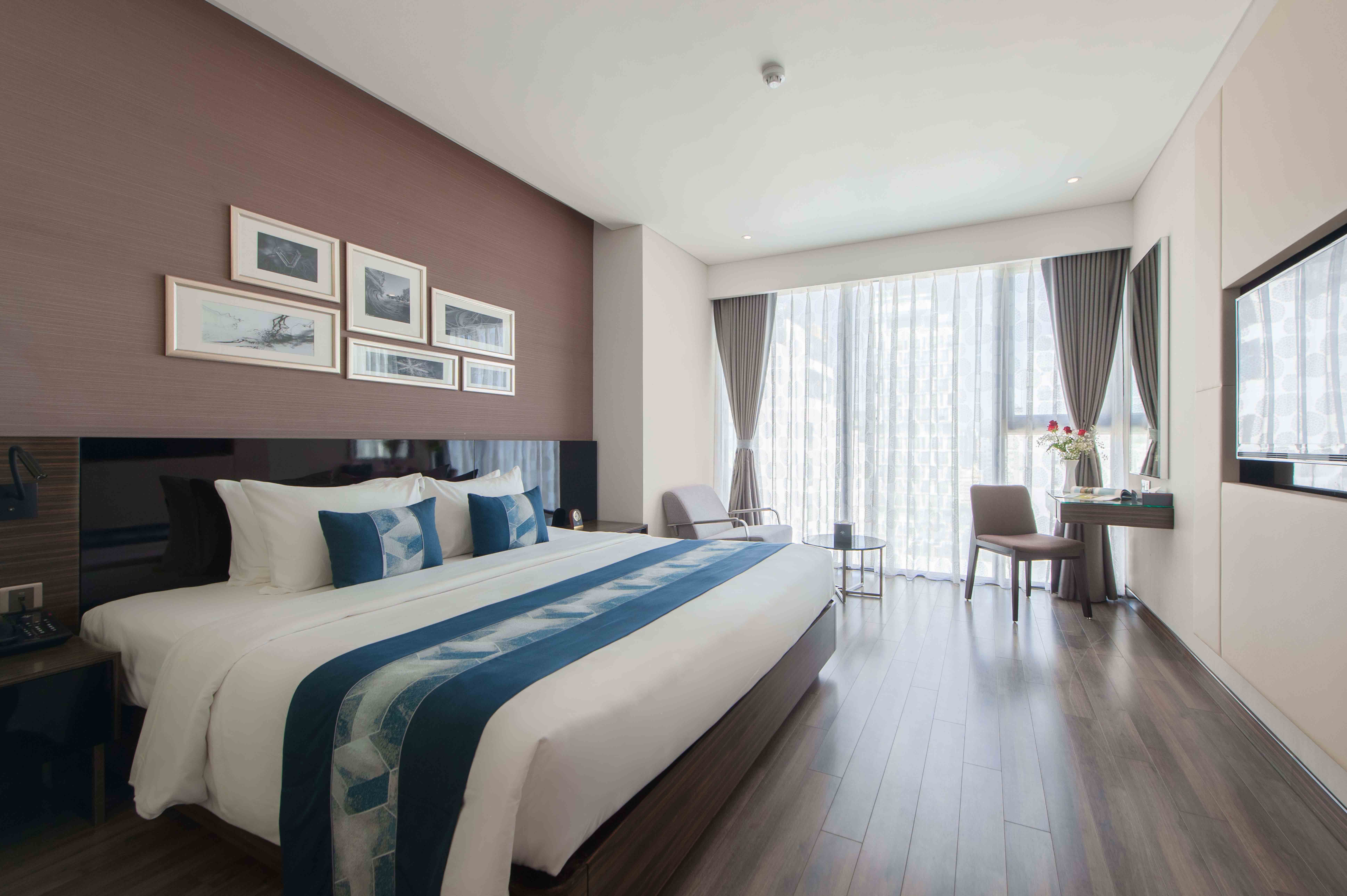 Hạng phòng Grand Suite King Seaview Balcony có diện tích 50m2 với thiết kế đẳng cấp đặc trưng, cùng tầm nhìn kết hợp hài hòa giữa hướng biển và hướng núi từ trên cao mang lại cảm giác tận hưởng sảng khoái cho du khách.