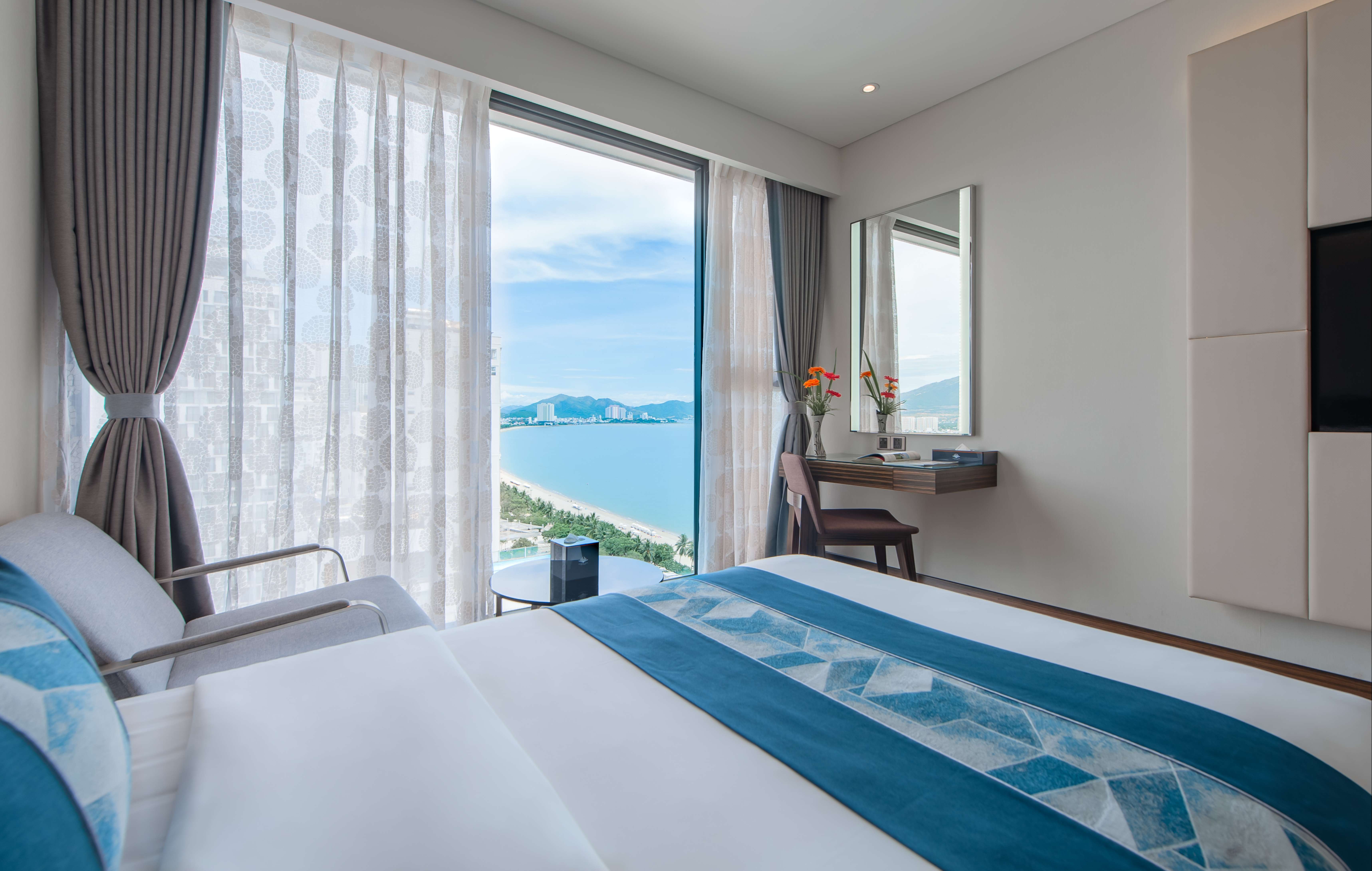 Grand Deluxe Twin Sea View là căn phòng có tầm nhìn hướng biển độc đáo, ôm trọn vòng cung Vịnh biển Nha Trang. Với kích thước 32m2, phòng Grand Deluxe Twin khi được thiết kế gồm 2 giường đơn 1m2 x 2m.